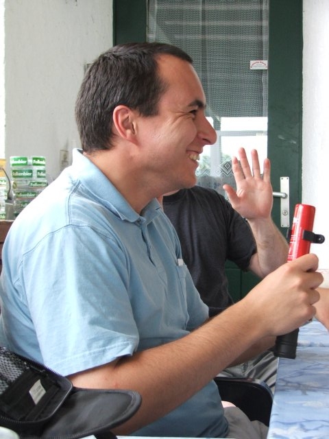 Stefan, mit dem allgegenwärtigen Minifeuerlöscher: