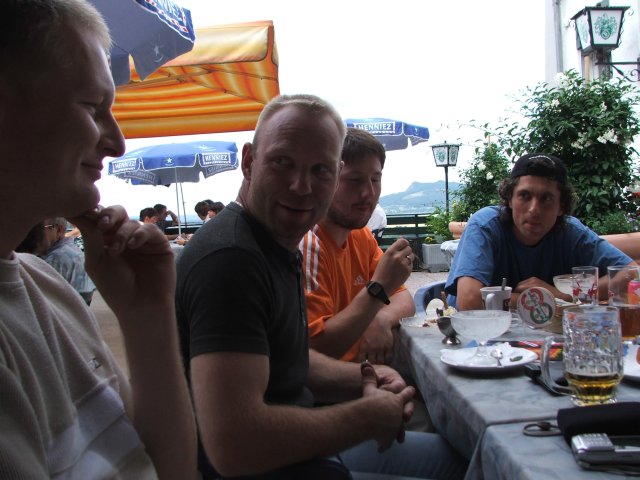 Am Dienstag und Mittwoch waren Vorträge angesagt, aber Montag- resp. Mittwochabend haben mich Stefan und Remo nochmal besucht bzw. zum Abendessen eingeladen - Stefan im Rathauskeller, und Remo im Restaurant oben im Alpental Brünig. Die Fahrt im Regen, mit quattro-Vorführung und traditioneller Alpenmusik, war erstklassig. Am Dienstagabend war von der Konferenz aus ein Abendessen im Nölliturm, mit Vorführung der Zunftschätze und traditioneller Musik.