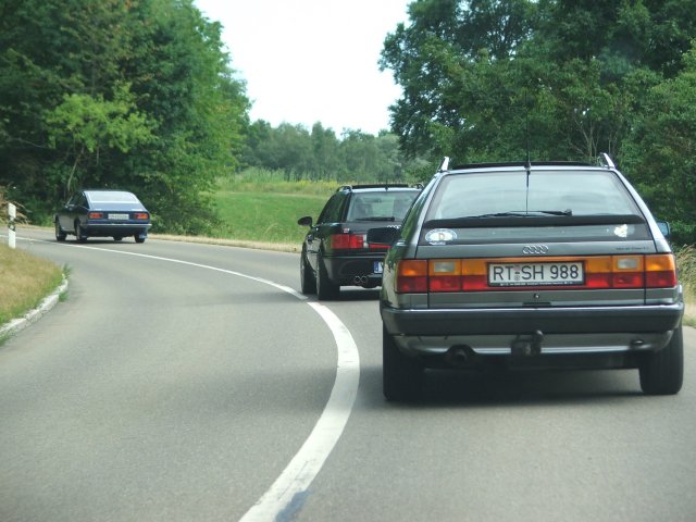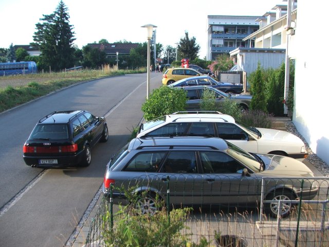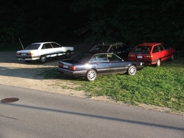 In Schaffhausen schlugen wir also standesgemäß auf, und trafen an der Raststätte ein Sammelsorium aus Audis und Leuten an. Nach groß Hallo wurden weiterhin die Autos bewundert (von Golf 1 bis S2 Avant), Probefahrten gemacht und Kontakte geknüpft. Hier bleibt mir besonders Remos MC Avant im Sinne, der wirklich herrlich durchzieht (obgleich das Fahrwerk mir für die Kurvenräuberei etwas weich war
