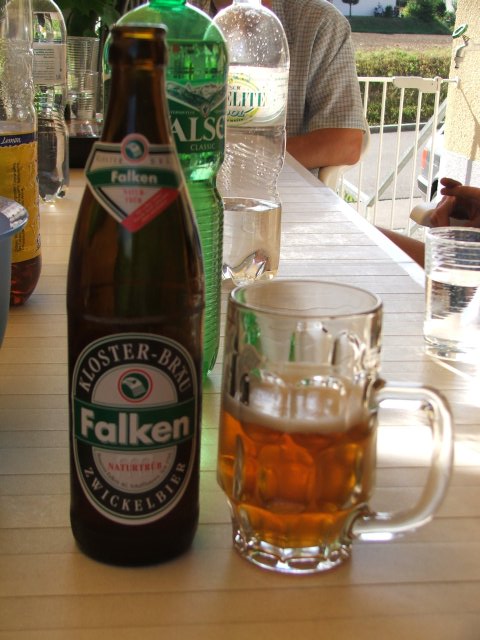 Stefan H. und Remo Arpagaus hatten quasi mir zur Ehre ein extra Auditreffen in Schaffhausen organisiert. Stefan holte mich in seinem S6 Avant ab und führte mir den getunten AAN sowie die herrliche adaptive Automatik vor. Nach einem Zwischenstop bei seiner Tiefgarage stiegen wir in den Typ 85 um (dessen Motor mich sehr an den FR meines Golfs erinnerte), und Stefan fuhr uns zu einem Retaurant mit Terasse, wo wir einen leckeren Imbiss mit Bier genossen. Von dort ging es weiter zu seiner Wohnung, deren geschmackvolle Einrichtung er mir zeigte. Nun stiegen wir auf seinen dritten Audi um - das wunderschöne Coupé S Automatic: