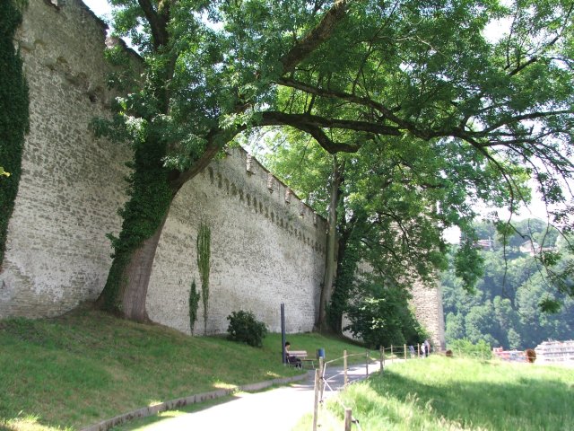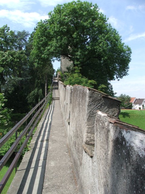 Nun an der Außenseite der Mauer entlang, dabei den Lugislandturm im Blick: