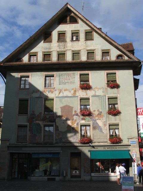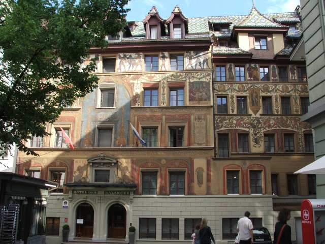 Donnerstag hatte ich spätnachmittags etwas Freilauf. Für den Abend war eine Dampferfahrt auf dem Vierwaldstättersee vorgesehen. Auf dem Weg zum Kai erspähte ich diese schönen Häuserfassaden: