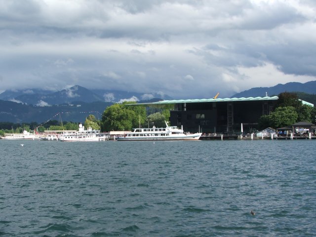 ... und das Kongress- und Kulturzentrum Luzern (KKL) aufzunehmen, von wo aus die Bootsfahrt gleich losgehen würde: