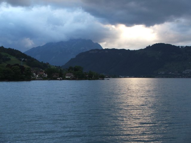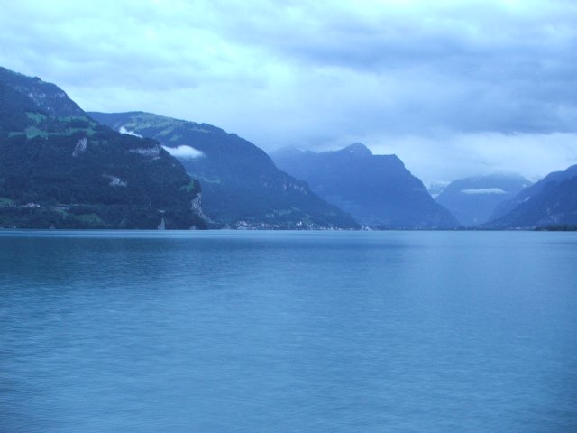 Diverse Bilder auf dem Vierwaldstättersee (leider war es sehr verhangen, daher der extreme Blaustich nach Sonnenuntergang, aber einiges ist trotzdem gut herausgekommen):