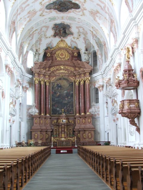 ... führte mich an die Hofkirche, in der ich vor einem plötzlichen Unwetter Schutz fand. Der Organist übte gerade, so hatte ich ein gratis Konzert beim Anblick des Altars:
