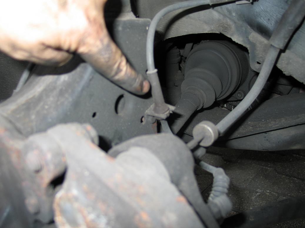 Ihr könnt es jetzt leicht nach vorne ziehen um die Antriebswelle aus der Nabe zu ziehen.