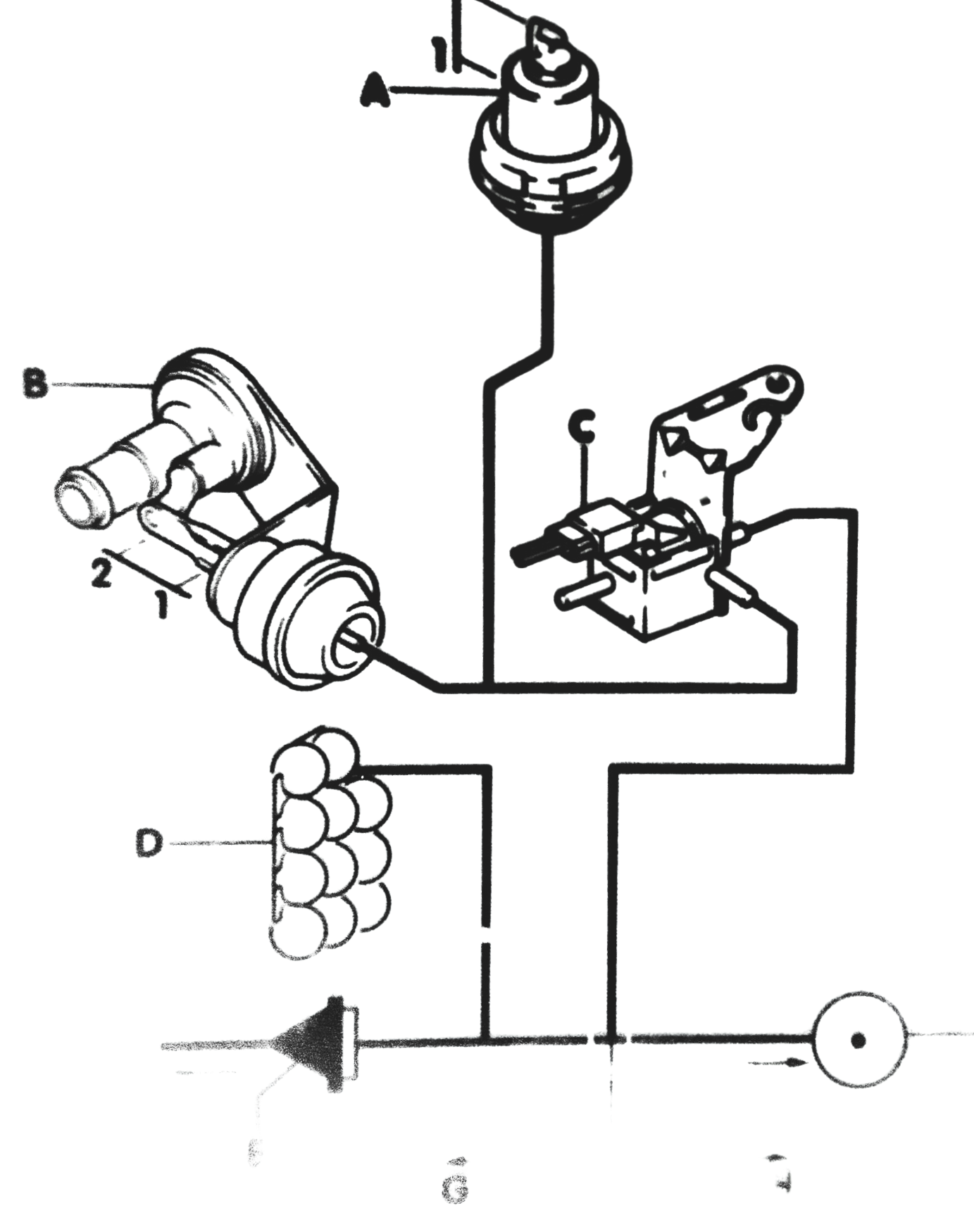 - G bei Benzinmotoren wird die starre schwarze Leitung mit dem Rückschlagventil in der Mitte an die Ansaugbrücke (Unterdruckgewinnung) angeschlossen