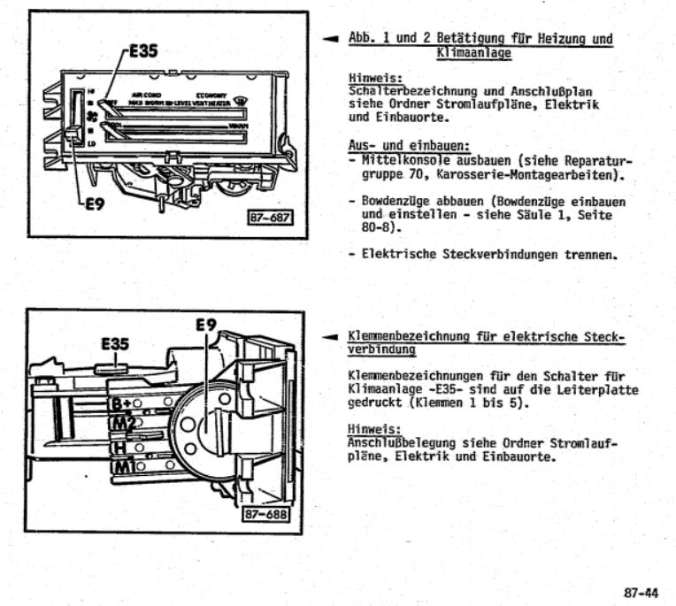 Die manuelle Klimaanlage im Typ44 bis BJ 7/1983 (extrem selten ursprünglich Typ43)