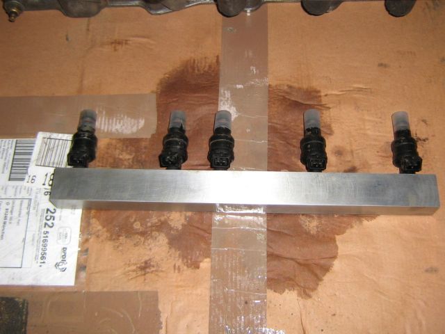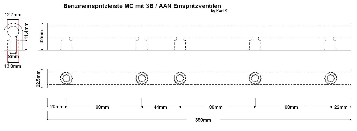 Da der MC Motor konstruktionsbedingt eine ungleichförmige Verteilung der Einspritzventile hat, kann man hier nicht die Einspritzleiste vom 3B verwenden. Entweder man besorgt sich eine von www.034efi.com, fertigt sich selbst eine an oder man lässt anfertigen.