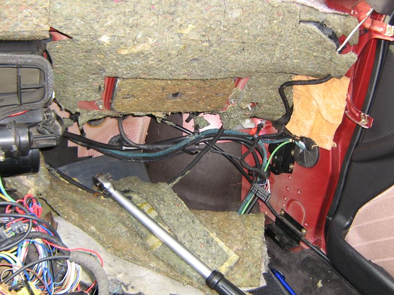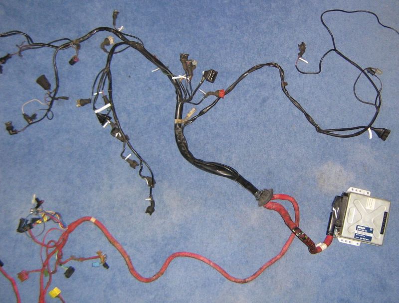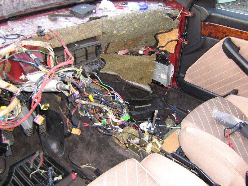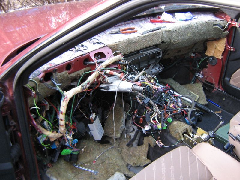 So habe ich zuerst die Mittelkonsole und dann das komplette Armaturenbrett demontiert. Im Motorraum ging es leichter voran da der Motor für die Überholung ausgebaut war. Im eingebauten Zustand des Motors ist das Durchziehen des Kabelbaumes bestimmt auch eine Herausforderung.