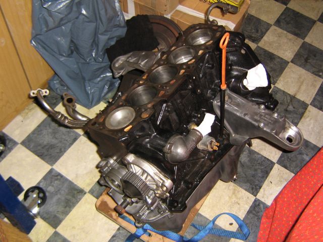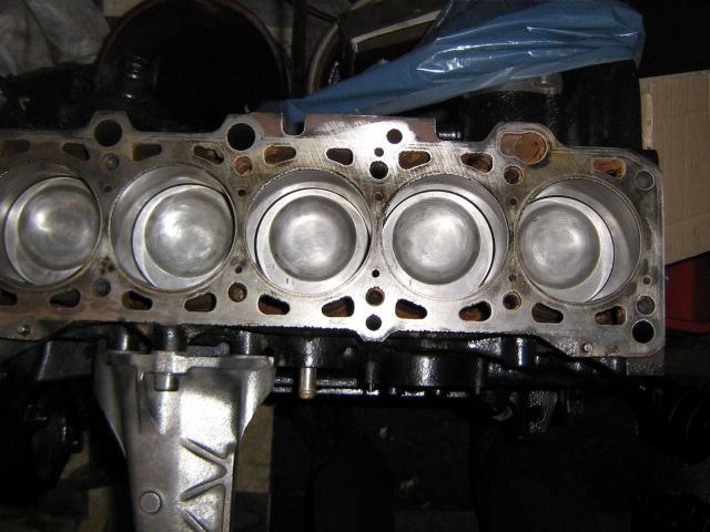 Von cabriotobi holte ich mir deshalb einen MC1 Motor aus einem Automatikfahrzeug mit 150.00km Laufleistung. Nachdem die Zylinderlaufbahnen nach der ersten Begutachtung schon sehr gut aussahen (Kreuzschliff noch gut zu sehen) war ich auf den Rest gespannt. Nach der Demontage stellte sich der Motor als geeignet für meinen Umbau heraus. Alle Lager sahen super aus und die Kolben hatten einen Durchmesser von 80,97mm.