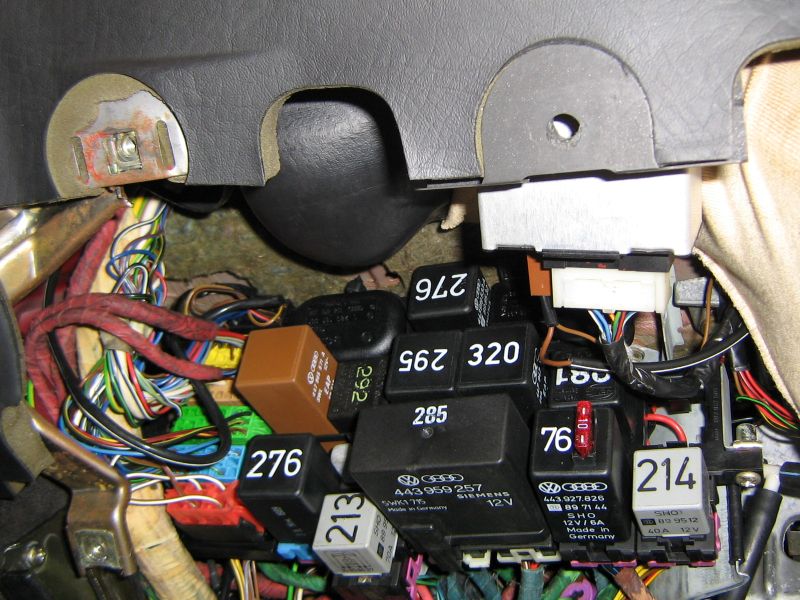 Beifahrerfussraum und zu sehen ist das Loch für den Kabelbaum zum Motorraum