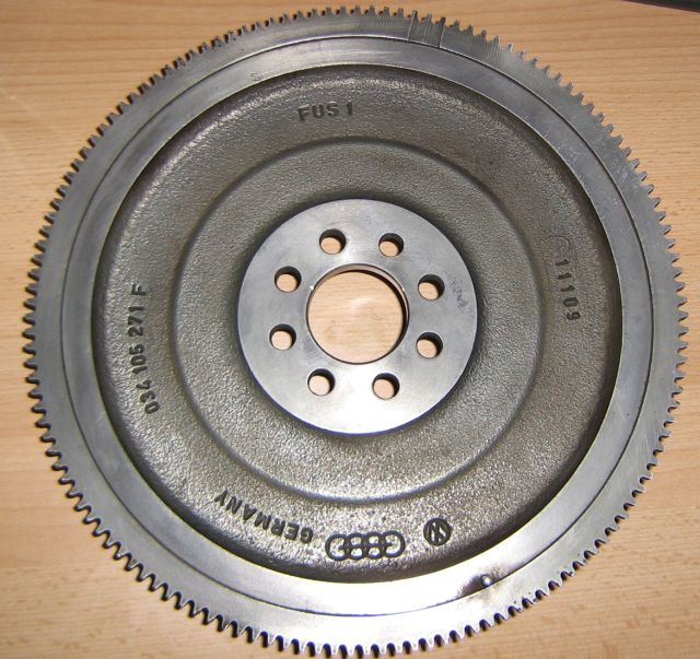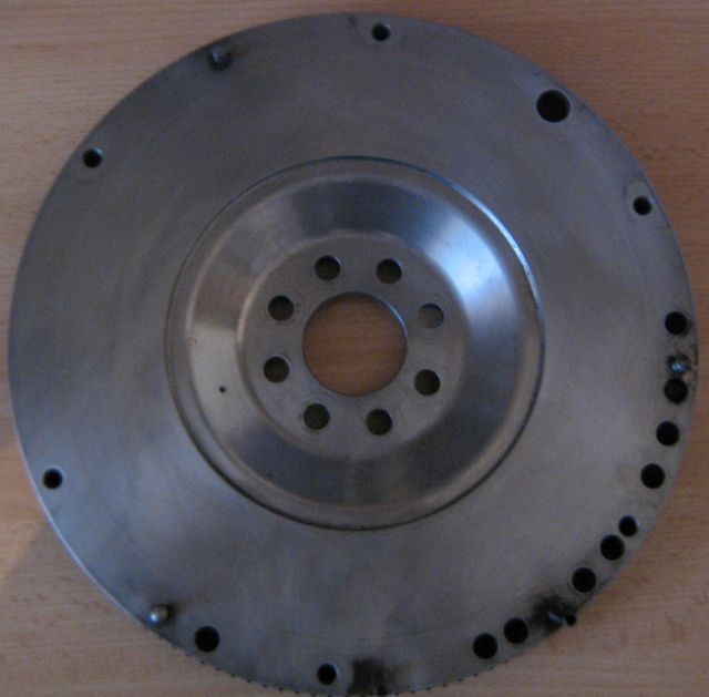 Das Gewicht der Schwungscheibe beträgt ca. 8kg und ist somit optimal für meinen Geschmack. Natürlich beschleunigt der Wagen umso besser, je weniger bewegende Massen mitbeschleunigt werden müssen, allerdings speichert die Schwungscheibe auch Energie und ist beim Schalten sehr nützlich um die Drehzahl zu halten. Da der Turbolader nur mit Drehzahl auf Touren gehalten wird und damit eingehenden Ladedruck, wäre eine zu leichte Schwungscheibe eher kontraproduktiv und hätte beim Schalten einen Ladedruckabfall zur Folge.