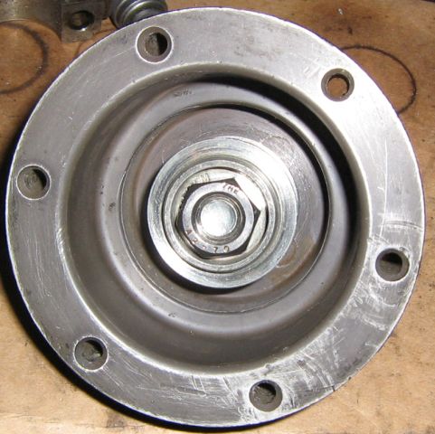 Nun schraubte ich die Schraube in den Deckel, schraubte die Mutter, den Federteller und die Selbstsichernde Mutter auf die Schraube und hatte so ein von außen verstellbares Wastegate. Wenn man nun oben die Schraube verdreht wandert der Federteller immer nach oben und unten, je nach Drehrichtung.