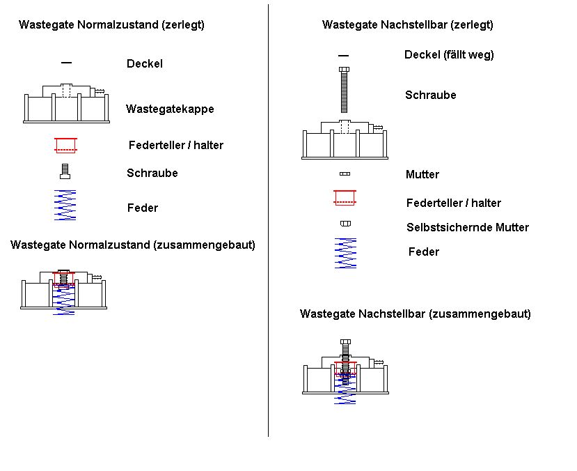 - Original MC Wastegatedeckel umkonstruieren, so dass eine rasche Verstellung möglich ist
