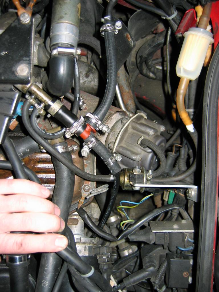 Diese Maßnahmen bringen jede für sich sicher nicht viel. Aber in Summe führen sie zu einem wirklich guten Ansprechverhalten. Für den serienmäßigen Ladedruck reicht es im allgemeinen aus, die Verschlauchung nach dem Plan zu ändern. Aber gerade in Verbindung mit auf 1,9 bar erhöhtem Ladedruck ist der Druckaufbau etwas problematisch. Hier lohnt es sich, alle Reserven auszuschöpfen. Es dauert sonst sehr lange, bis bei Vollast der volle Druck anliegt. Es muß schließlich von 1,2 bar bis auf 1,9 bar geregelt werden.