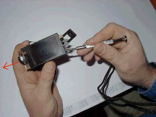 Mit Schraubendreher die Elektronikeinheit von hinten aus den Gehäuse hebeln. Elektronikeinheit in Pfeilrichtung herausdrücken.