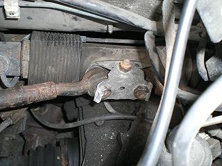 - . Mutter der Senkrechten Schraube am Lenkgetriebe lösen (15 SW)